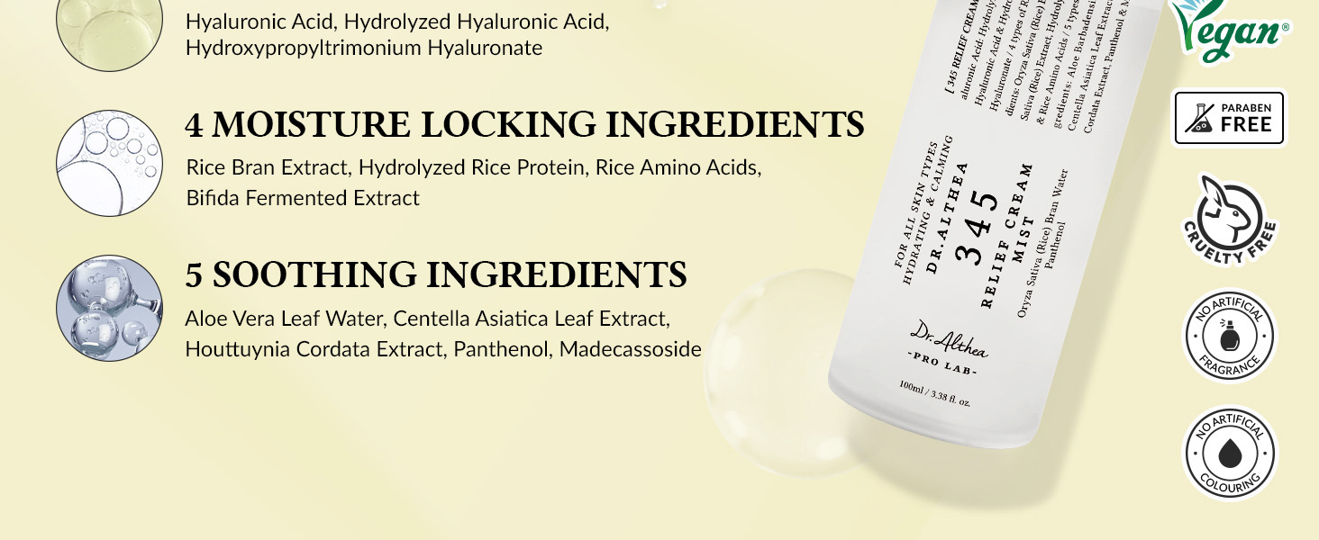 WHY CHOOSE DR.ALTHEA : Our products are free from artificial coloring, fragrance, and parabens, ensuring it is gentle on the skin. Additionally, it is Vegan-certified to meet ethical and eco-friendly standards.