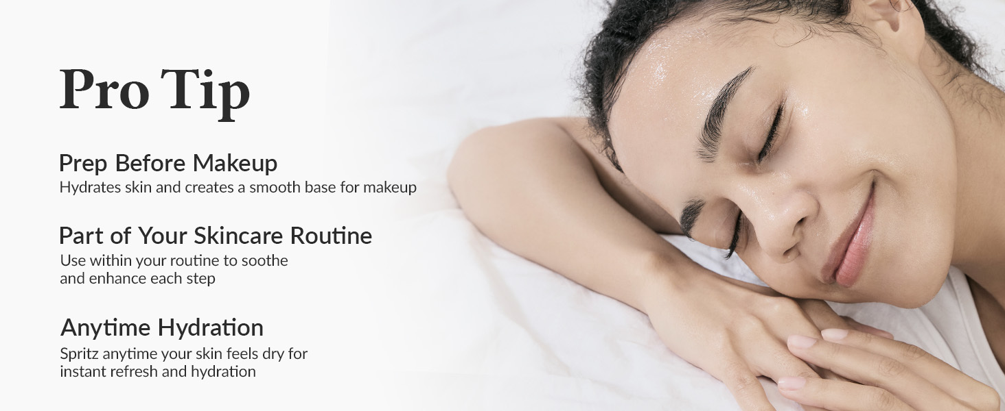 VESATILE MIST : Our advanced spray bottle evenly sprays mist onto your skin and can be use as a toner or serum anytime throughout the day, before or after makeup, or whenever your skin needs an instant boost of hydration.