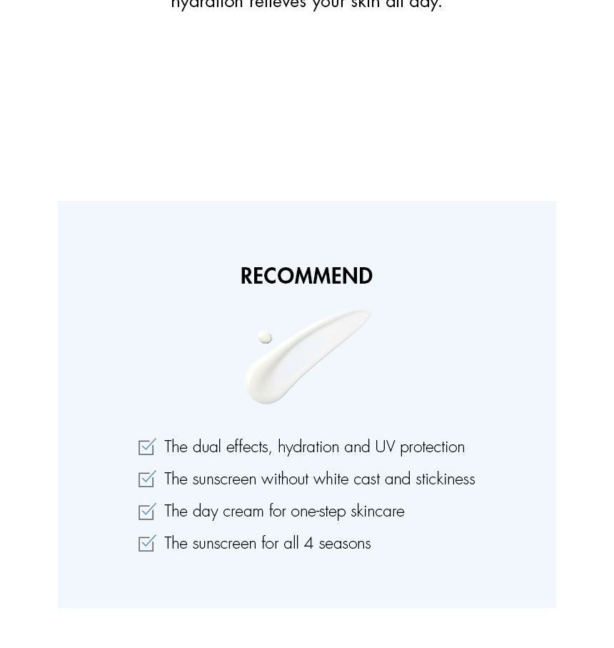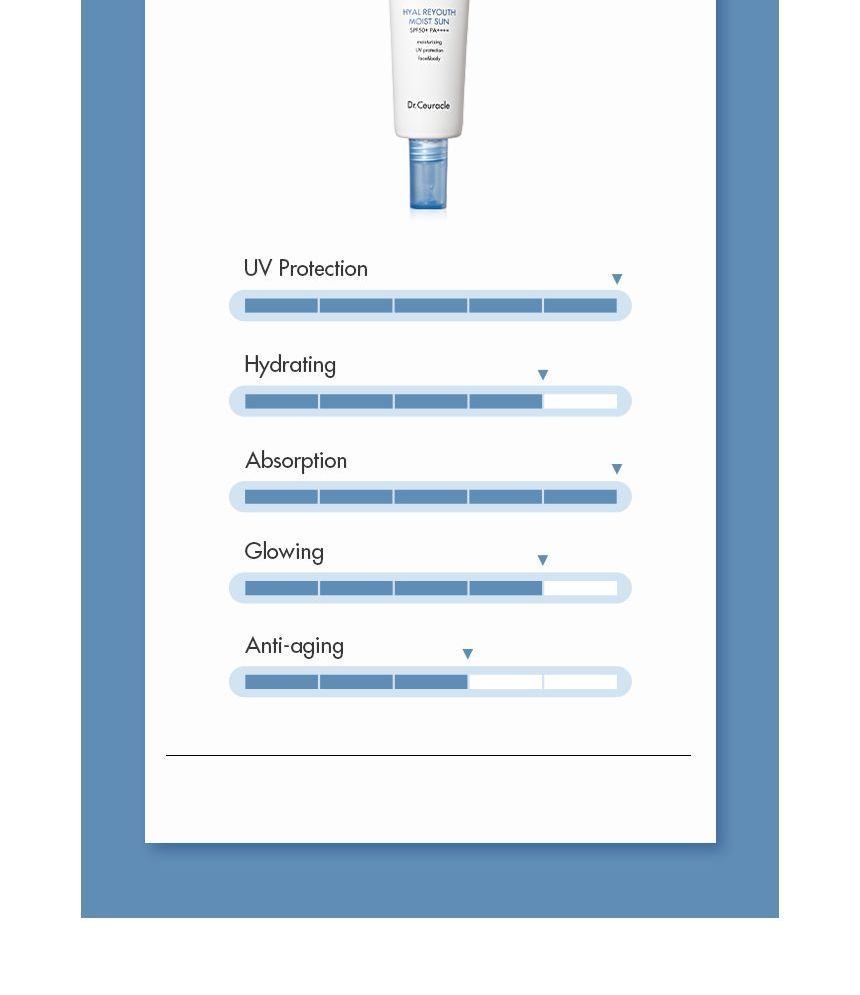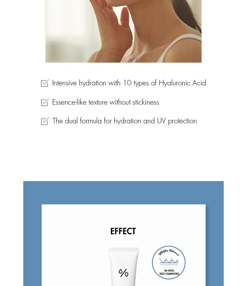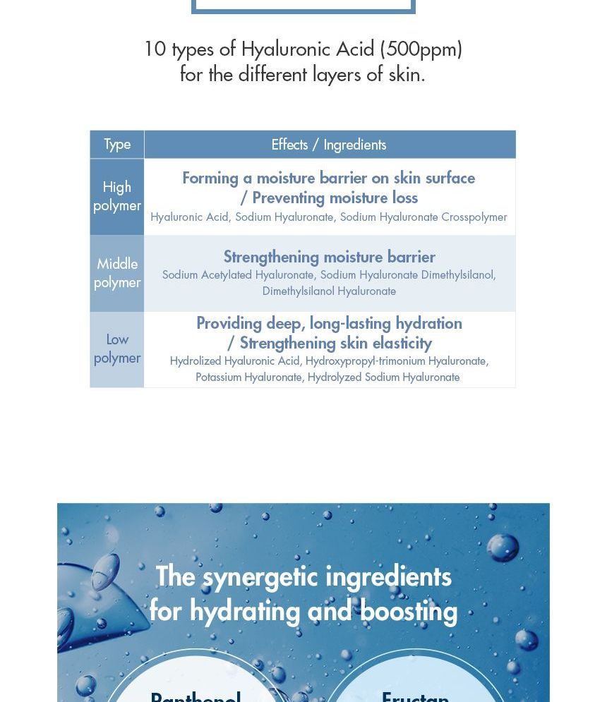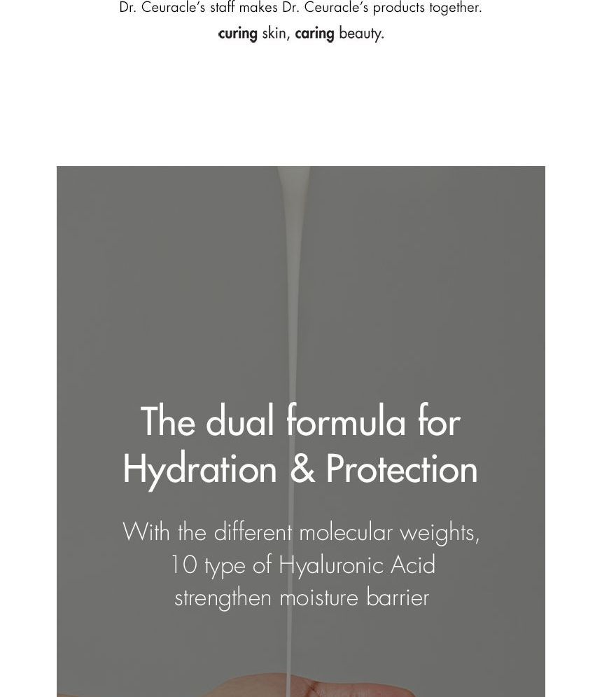 The dual formula for Hydration & Protection! With the different molecular weights, 10 type of Hyaluronic Acid strengthen moisture barrier.
