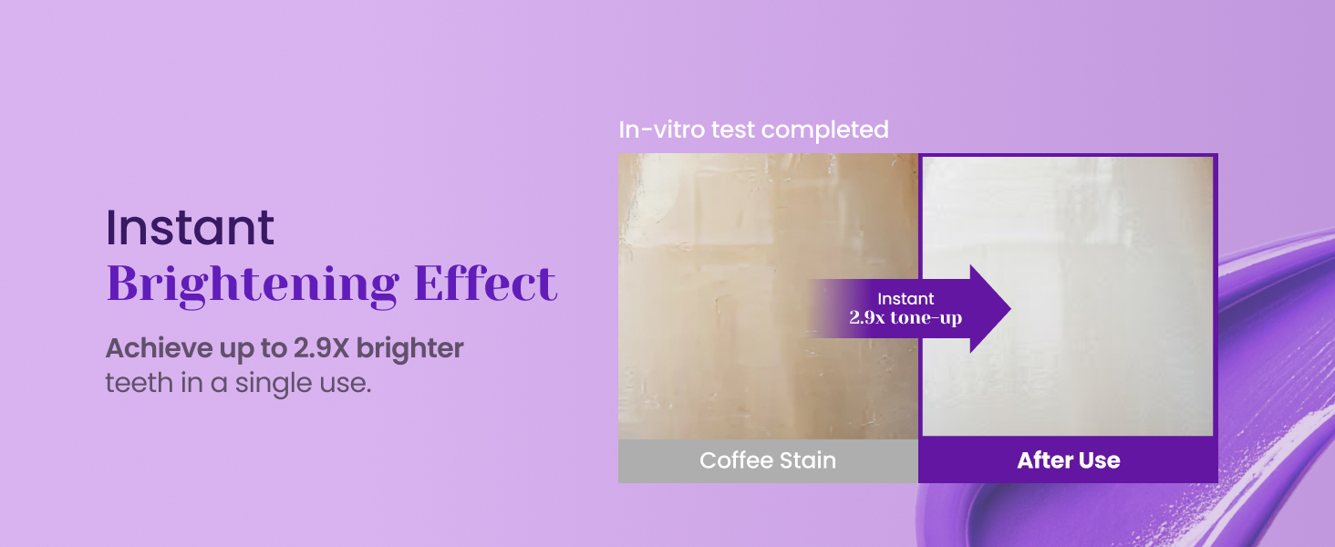 [Visibly Whitens Yellow Teeth] Purple tone-up formula helps visibly brighten yellow teeth; see a whiter smile after just one use.