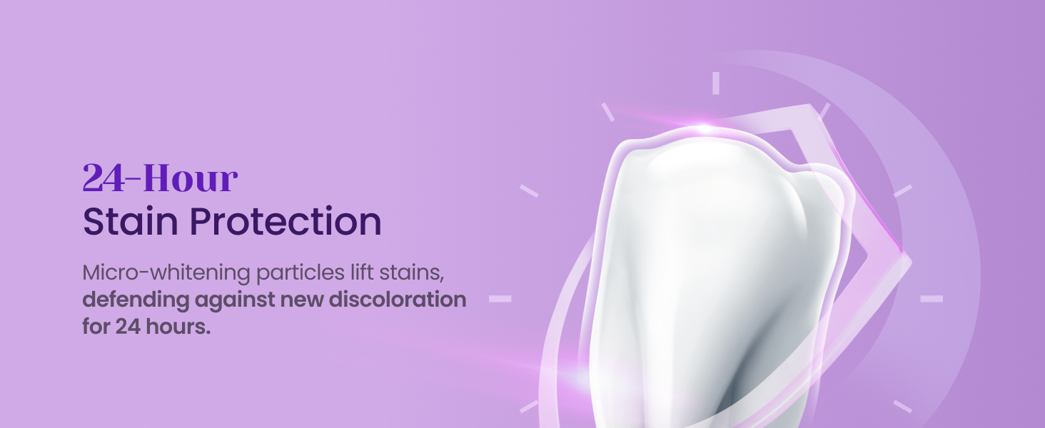 [24-Hour Stain Defense] Smart whitening particles lift away surface stains and help protect against new stains for up to 24 hours.