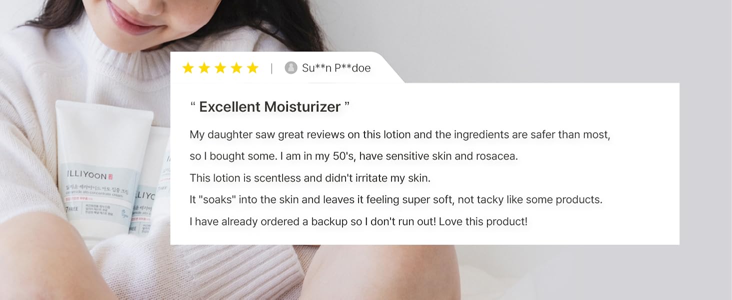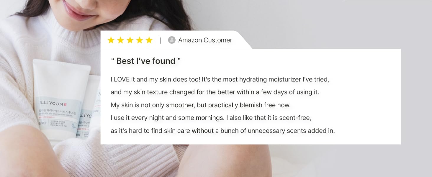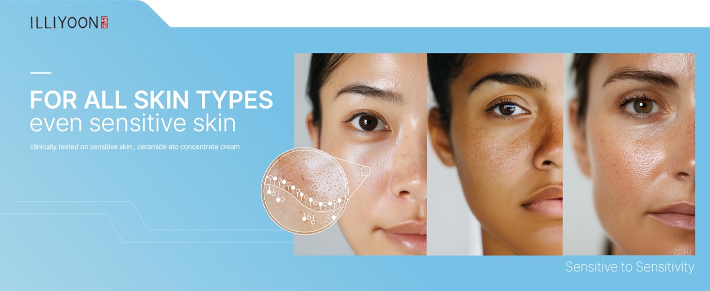 ALL-AGE SOLUTION FOR HEALTHY SKIN: Leveraging cutting-edge technology, ILLIYOON ensures safe use for all family, even for babies. It encapsulates a meticulously balanced fusion of Ceramides, Fatty acids, and Cholesterol—three bio-identical components of your skin's natural moisture barrier.Also, low pH formula ensures that these vital nutrients fortify your skin without triggering irritations and leavE the skin feeling soothed and resilient.