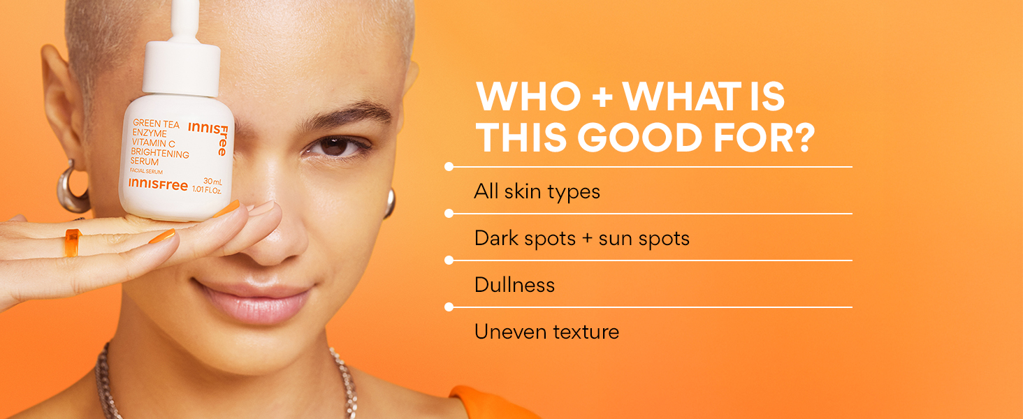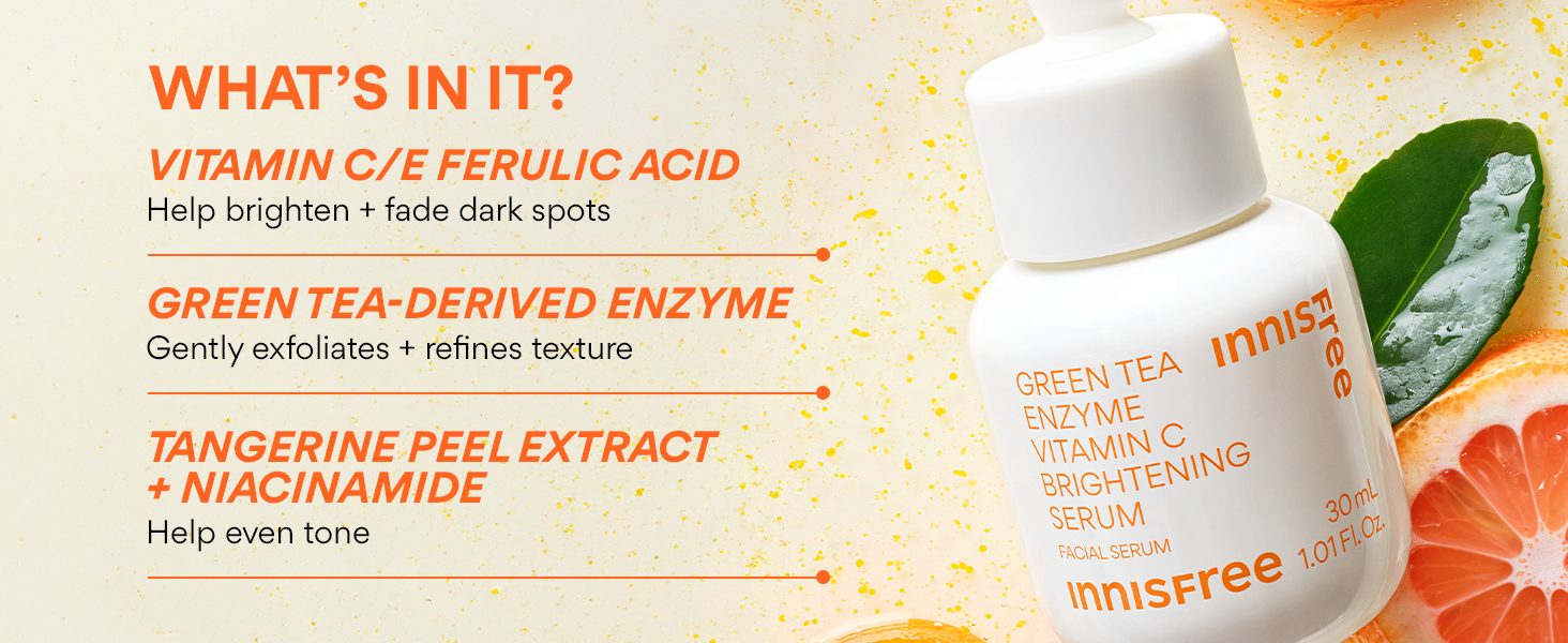 Product Benefits: This Vitamin C Serum is formulated with Green Tea-derived Enzyme, Vitamin C, tangerine peel extract, and hyaluronic acid that provide double-duty brightening + exfoliation for a more even-toned, refined complexion. This Vitamin C Serum is formulated with Green Tea-derived Enzyme, Vitamin C, tangerine peel extract, and hyaluronic acid, providing double-duty brightening + exfoliation for a more even-toned, refined complexion. This Vitamin C Serum is formulated with Green Tea-derived Enzyme, Vitamin C, tangerine peel extract, and hyaluronic acid, providing double-duty brightening + exfoliation for a more even-toned, refined complexion.