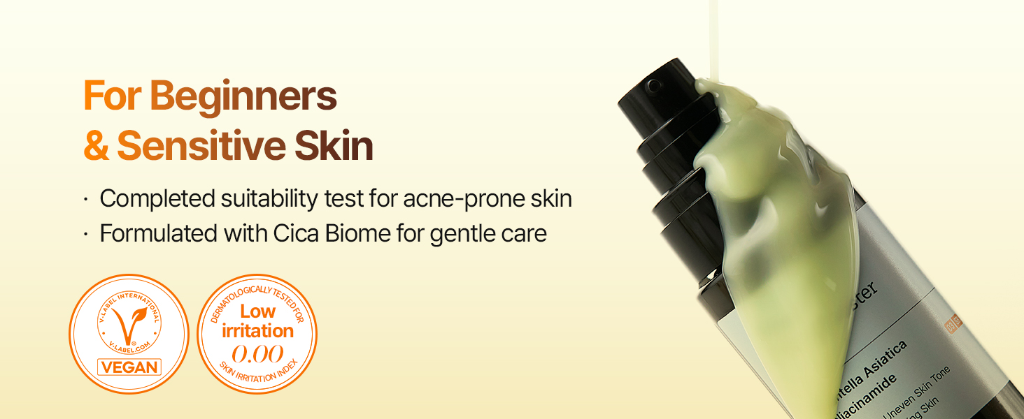 [Cica Biome Complex for Sensitive Skin] Formulated with 4 plant-derived Cica extracts and patented Centella Asiatica probiotics, this korean skincare serum soothes irritation, controls excess sebum, and provides 4-layer pore care. Safe for use on acne-prone and sensitive skin.