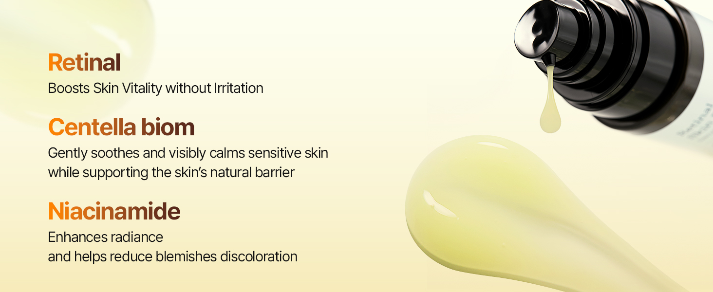 [RetinAL Advanced Technology] Retinaldehyde delivers 11x better absorption, soothing sensitive skin while refining texture and minimizing pores. In just 4 weeks, it smooths wrinkles, firms skin, and boosts radiance for a youthful glow.