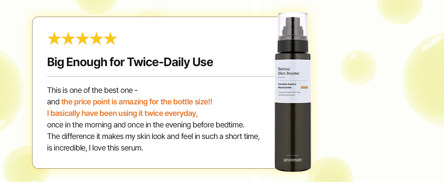 [Perfect for Beginners] Low-irritation retinal in a generous size, formulated with care, this serum delivers powerful results with zero irritation, making it perfect for beginners and sensitive skin. Plus, the large size lets you apply generously without worry!