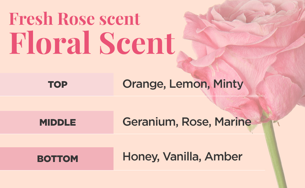 ROMANTIC & SUBTLE FRAGRANCE: Wake up and stay energetic with fresh rose and geranium scent. Rose and pomegranate Extract helps keep the skin shiny and cleanse skin and prevent blemishes. Moisturization is upgraded by adding Manuka Honey and Flowers Extracts.