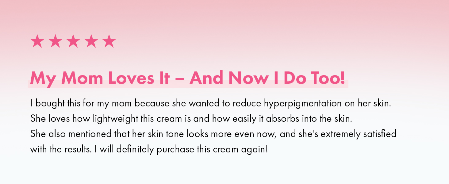 Formulated with Glutathione for enhanced synergy, it accelerates spots fading. This fast-absorbing cream provides soothing hydration for sensitive skin, leaving a non-sticky, refreshing finish without irritation. Perfect for all skin types.