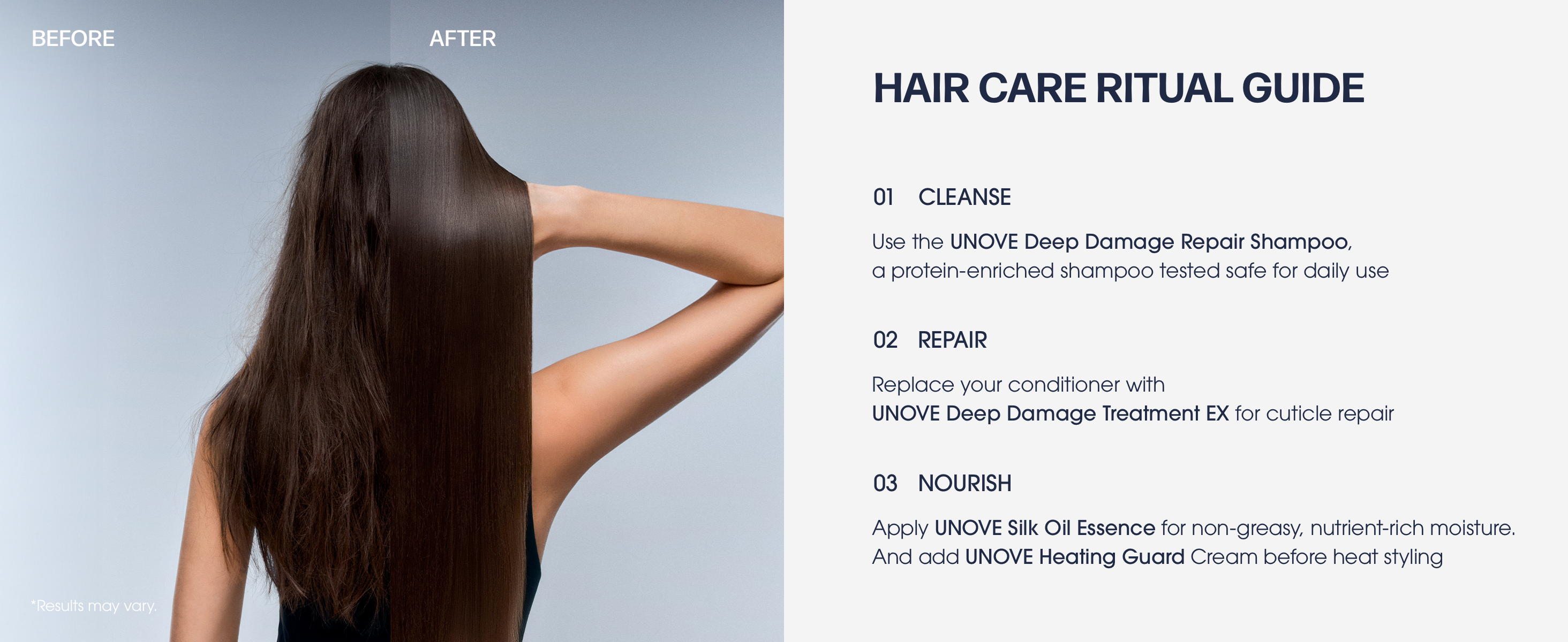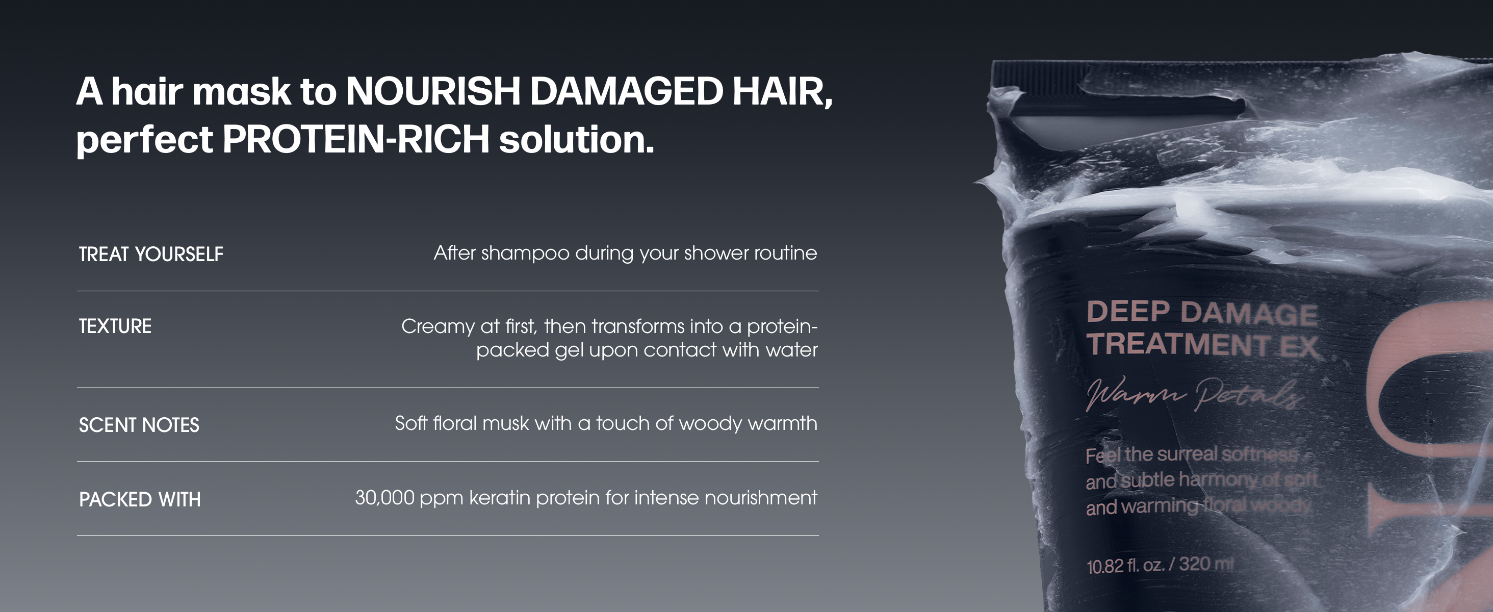 Dr.FORHAIR's Deep Damage Treatment EX from their UNOVE line is designed and made with 30,000ppm of Keratin-PF to restore even the most damaged hair from frizz or even chemical treatment.