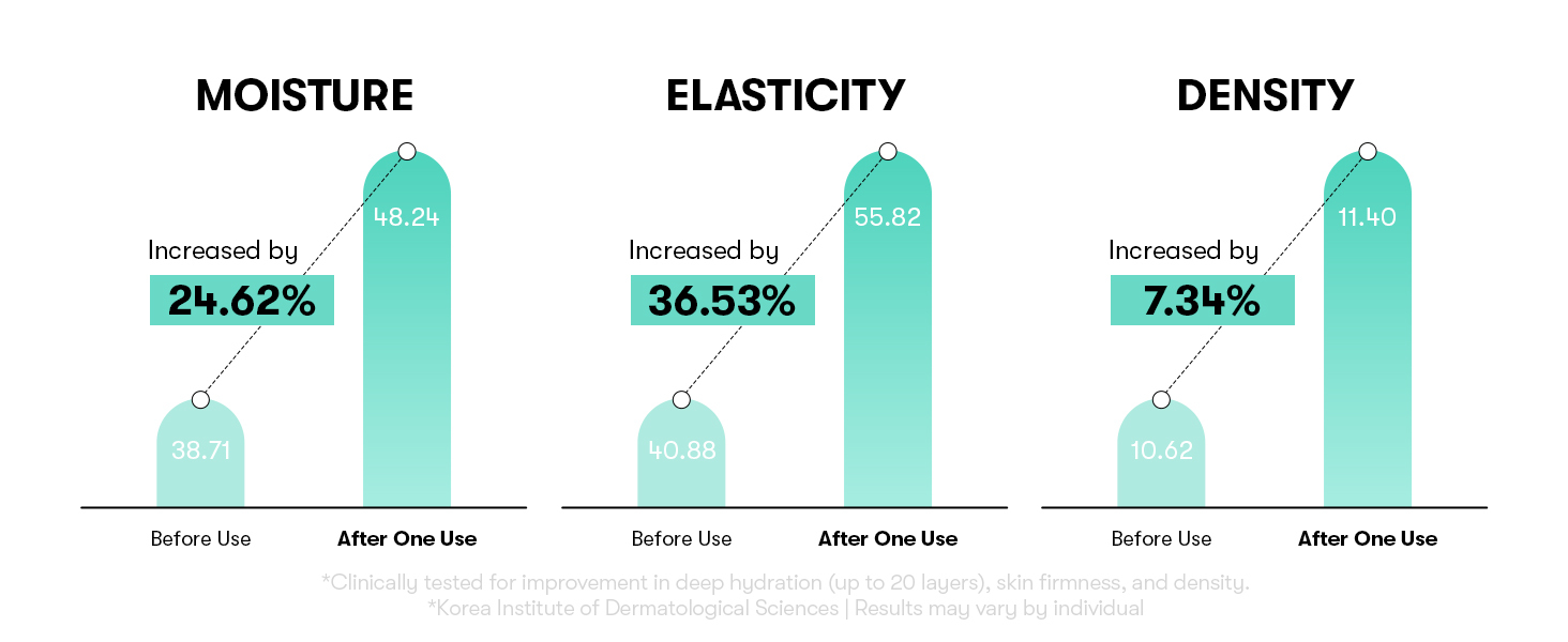 [LUMINOUS HYDRATION] Our essence, with its smooth milky texture, not only forms a glowing moisturizing layer on your skin but also helps improve skin elasticity, imparting a spa-like water glow effect and hydrating your skin with every application.